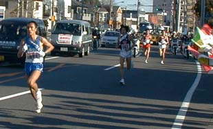 | 3区藤沢を走る野々口(神) | 4区二宮を走る藤田(駒) |