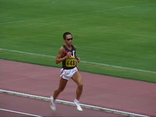 男子1500m 前半は鹿屋体大永田が引っ張り、中大永井・第一工大ドリウッチ・ 法大徳本が追う展開だったが最後ドリウッチがスパートし 2連覇を飾る、2位徳本、3位永田 |