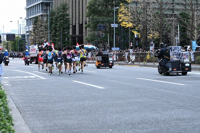 | 8:00:10 1区スタート直後、読売新聞角を曲がって日比谷通に出て来る |