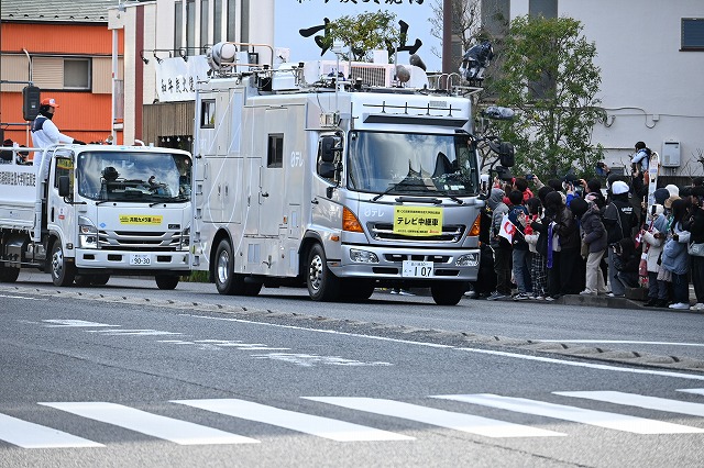 | 9:12:53 2区新子安駅前(4.3km地点)、先頭の中継車とトップ中大・國學院が近づく |