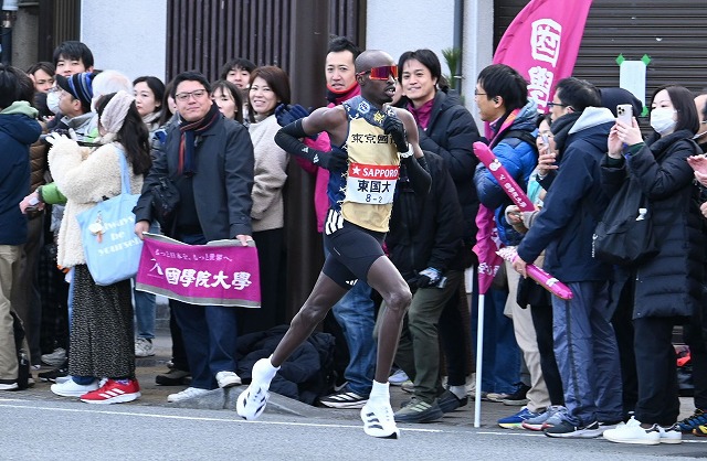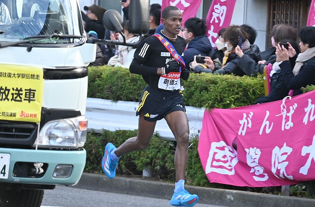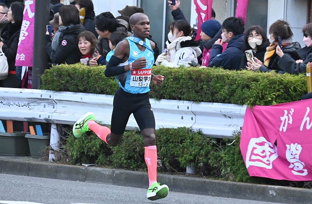 | 9:14:37 2区新子安駅前 トップと1分31秒差、14位通過、ムチーニ(創価3:区間5位・通算7位) |