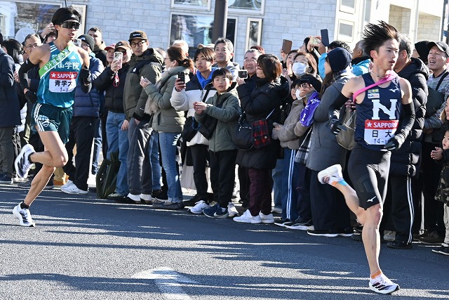 | 10:28:30 トップと3分40秒差、9位、冨田(日大4:区間14位・通算10位)・ 10位宇田川(青学4:区間7位・通算8位) |