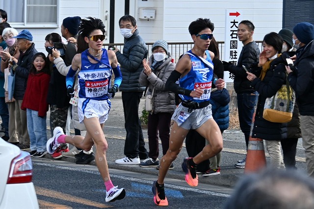 | 11:32:00 トップと5分22秒差、14位集団、南坂(東海3:区間5位・通算11位)・ 平川(神大3:区間9位・通算13位) |
